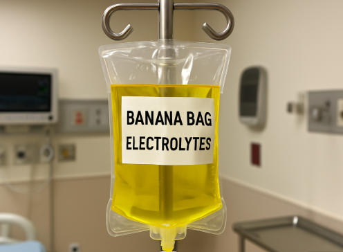 - Banana bag: Saline-based Infusion Bag focused on thiamine, folate, magnesium, and multivitamins; historically linked to alcohol-related deficiency.